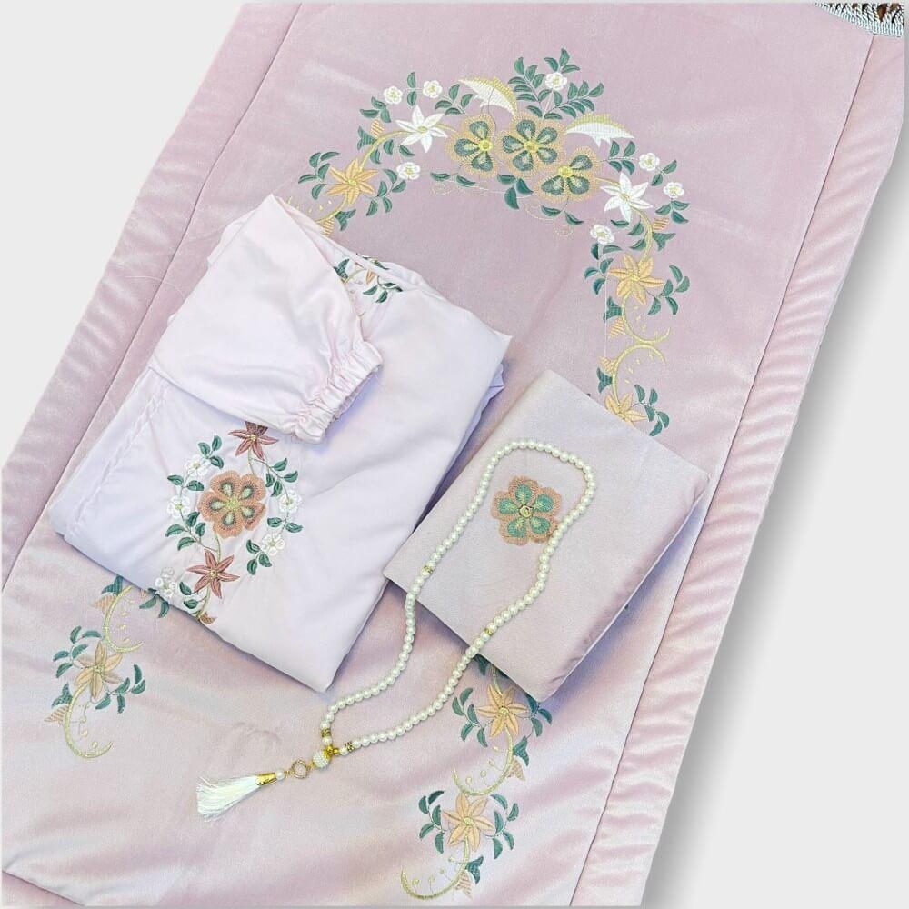 يتميز هذا المنتج " طقم سجادة صلاة اسفنج" بتصميمه العصري والأنثوي، مناسبة لجميع الأعمار، مع حواف أنيقة تضفي لمسة من الجمال على مكان الصلاة. وشرشف الصلاة ذات اللون الهادئ والانثوي والمسبحة البيضاء والمصحف متوسط الحجم مثالي ليوفر لك دعماً مرنًا ويسهم في منع شعور التعب أثناء الصلاة، مما يتيح لك التركيز الكامل أثناء عبادتك.